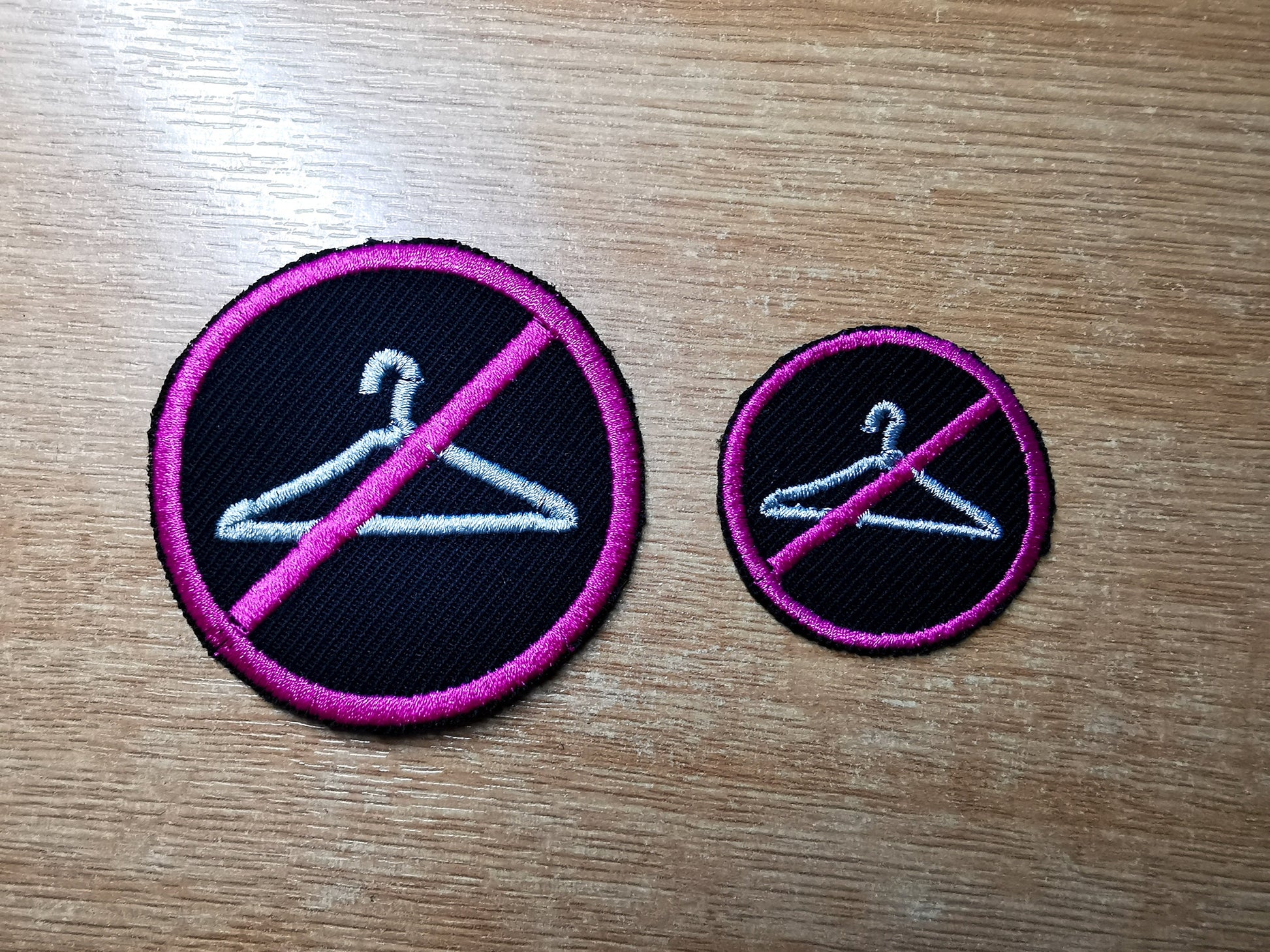 Bigger Never Again Abortion Rights Hanger Feminism Iron on Patch Larger Size