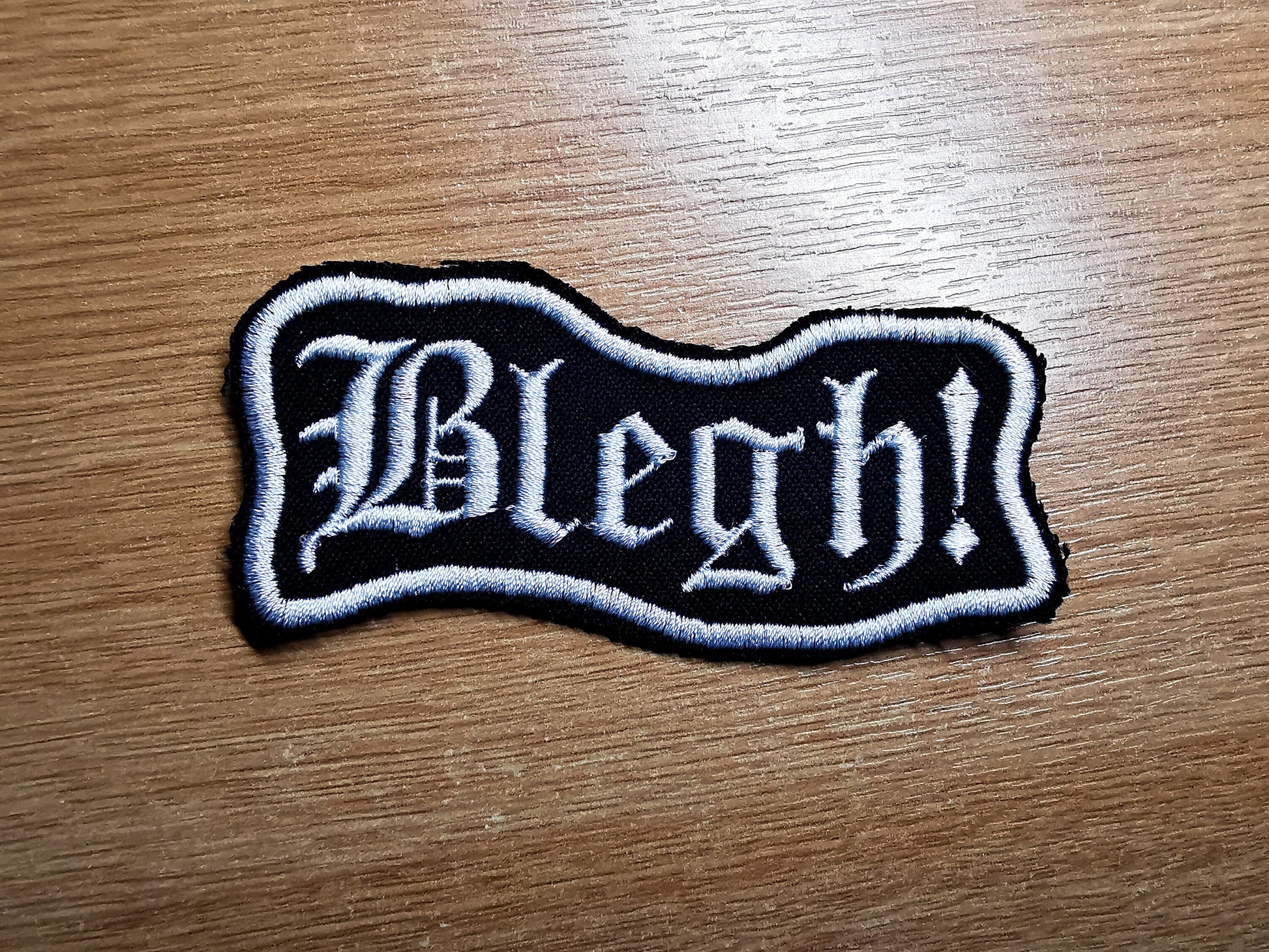 Blegh Metalcore Tribute Patch, for fans of Architects, Deathcore, and all the other Blegh vocalists. Fully white patch with text and border in white over black fabric.