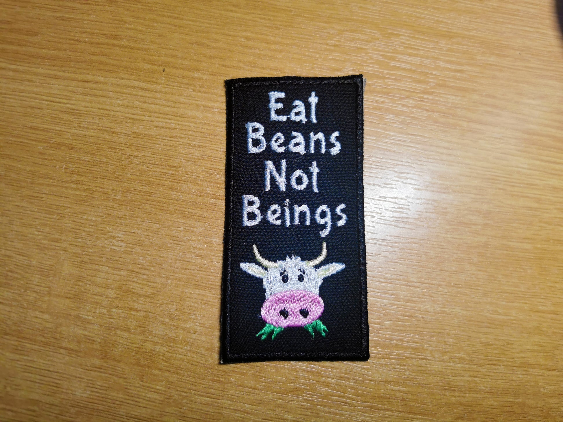 Eat Beans Not Beings Vegan Iron On Embroidered Patch Vegetarian Gift