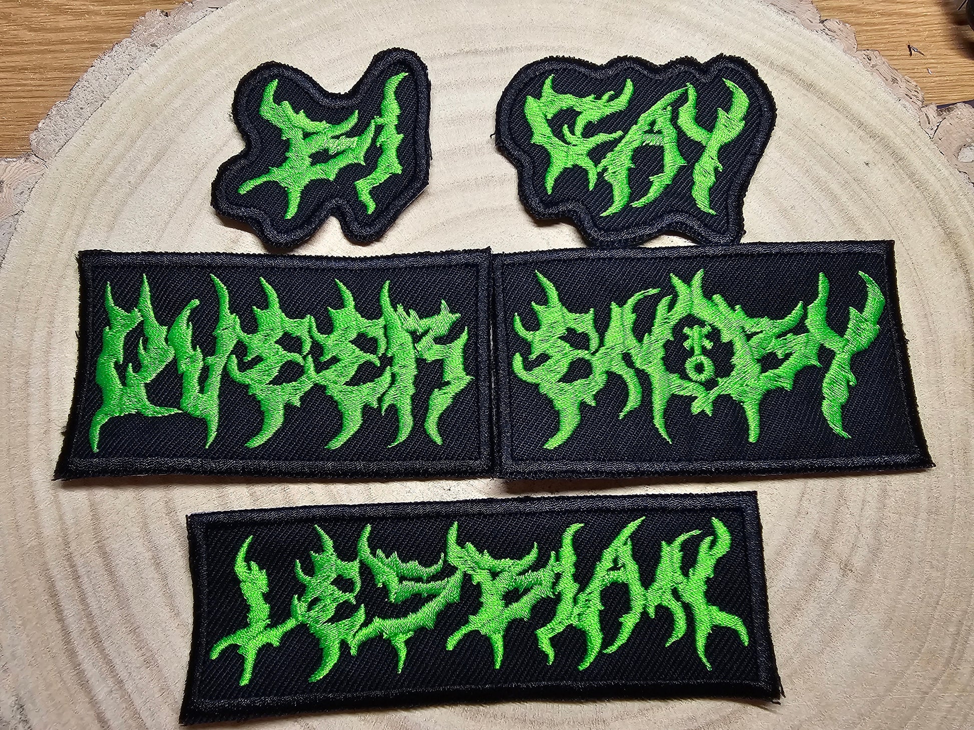 LGBTQ+ Black and Death Metal Fluorescent Green Embroidered Patches