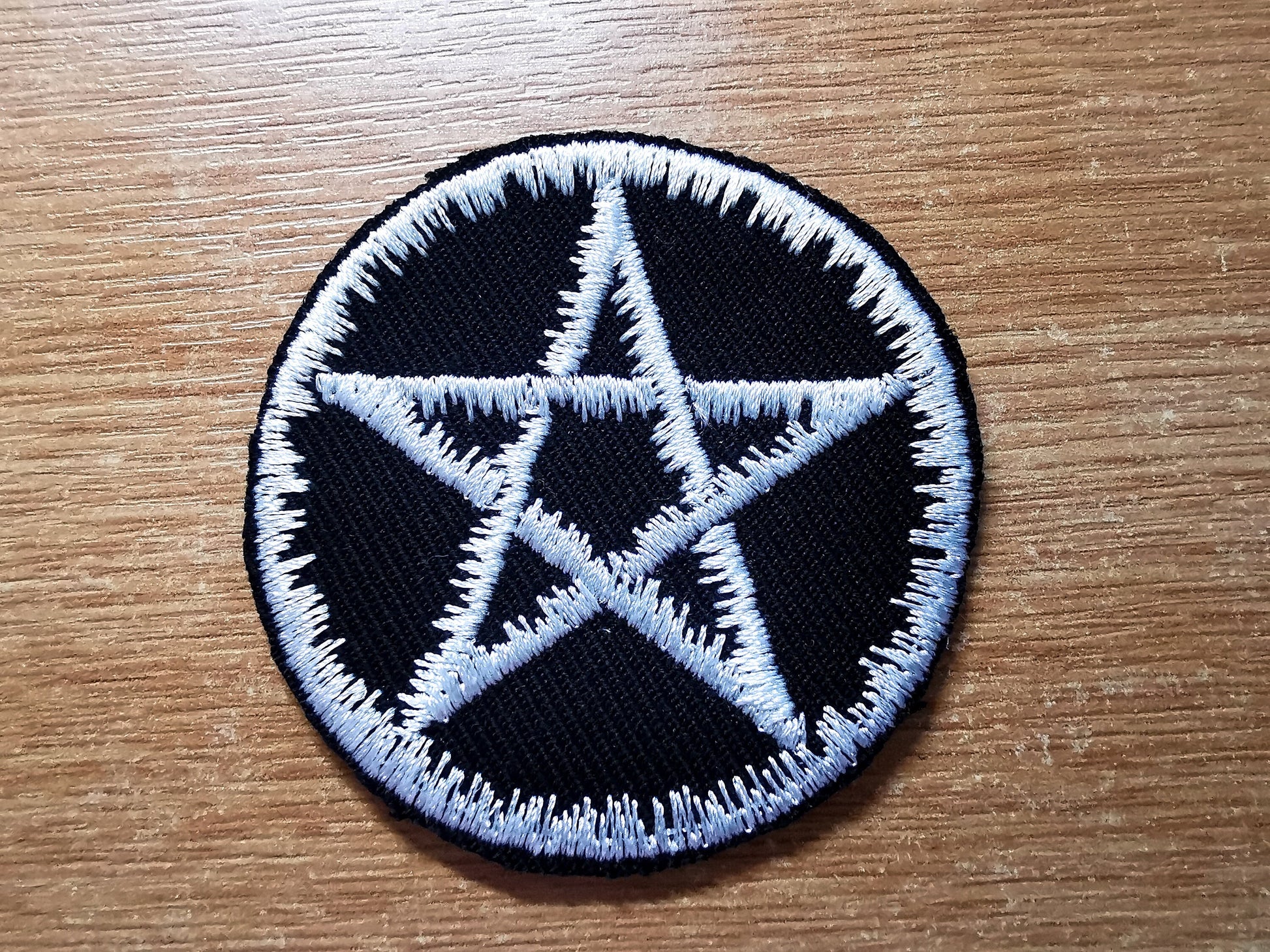 Pentagram Iron On Embroidered Patch Norse Mythology Viking Black Metal style patch. Styled with heavy metal, black metal and death metal style fonts.