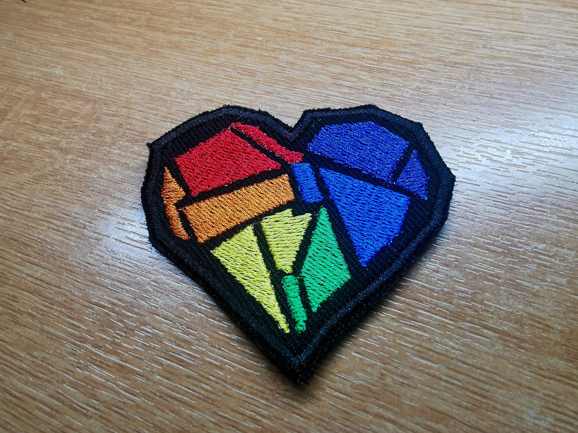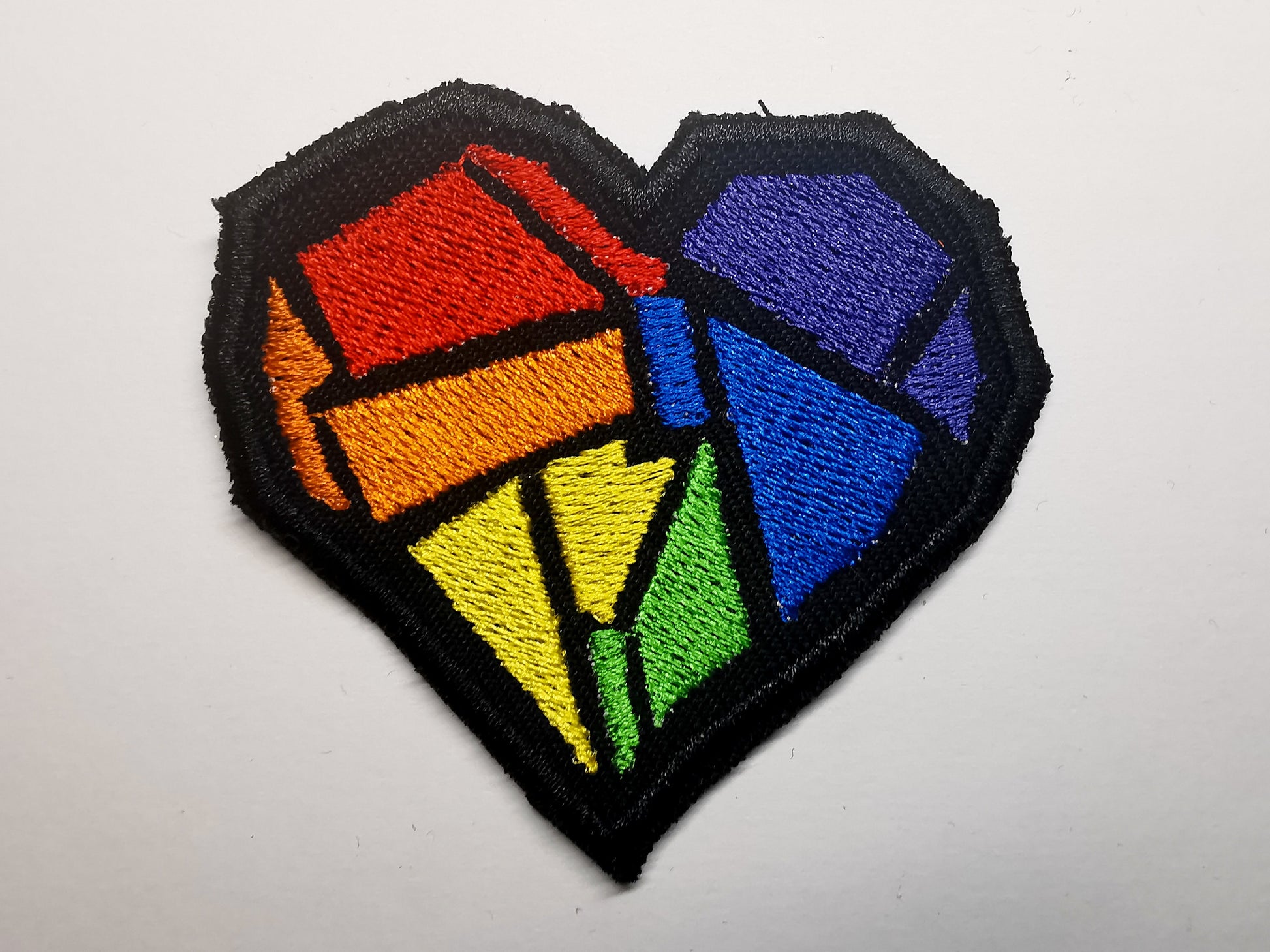 Rainbow Heart Embroidered Patch Rave Retro Puzzle Cube Style