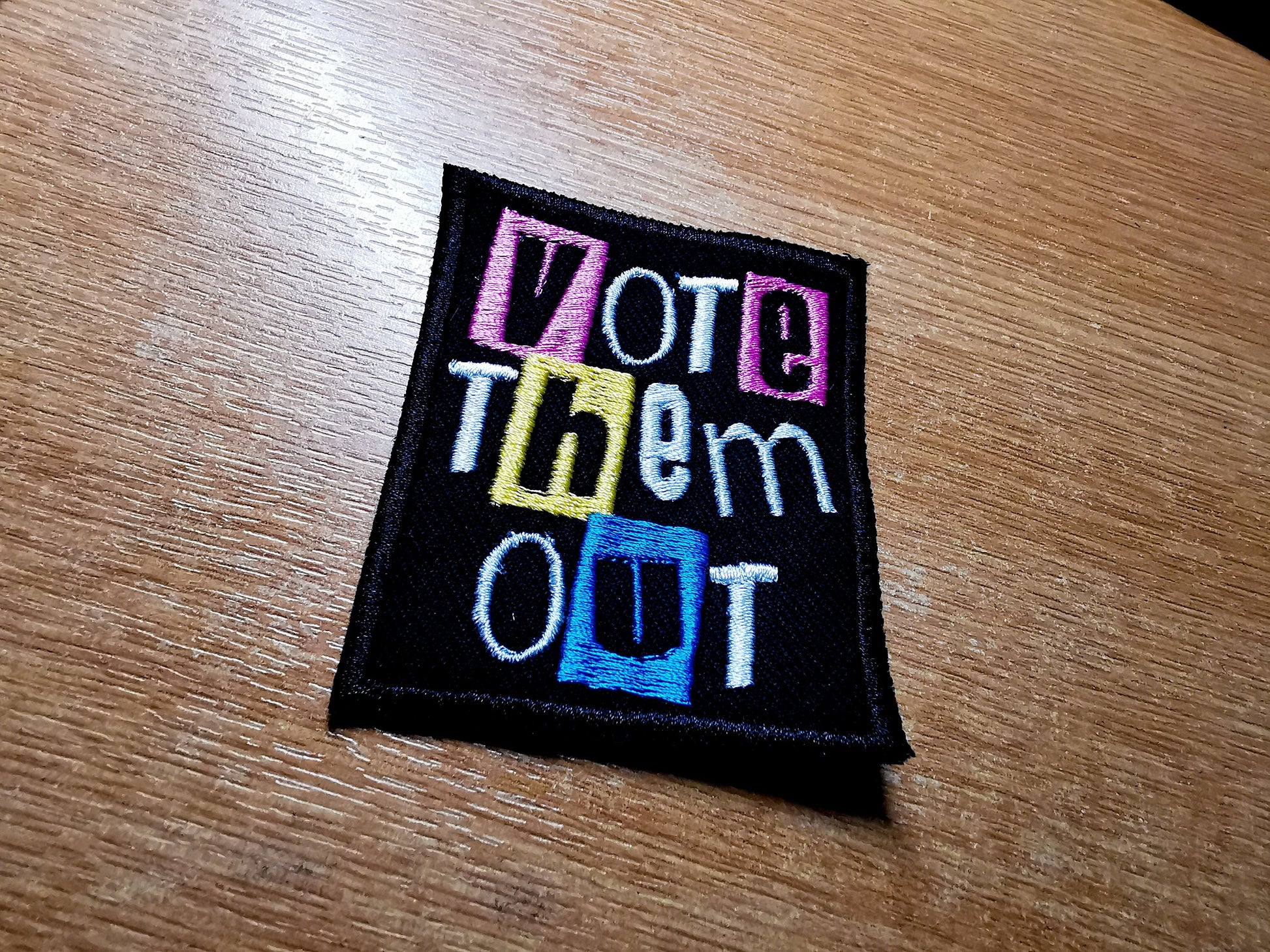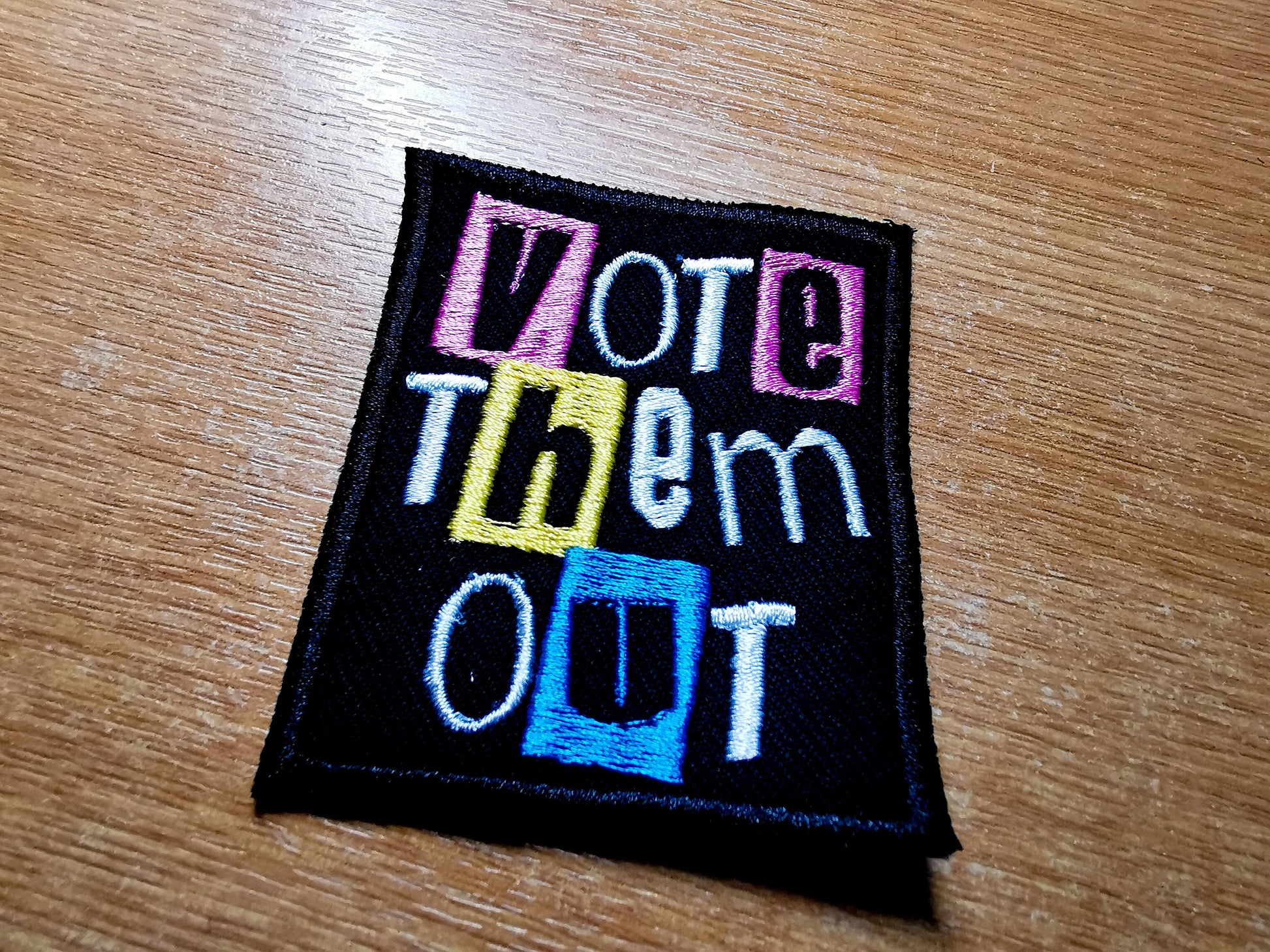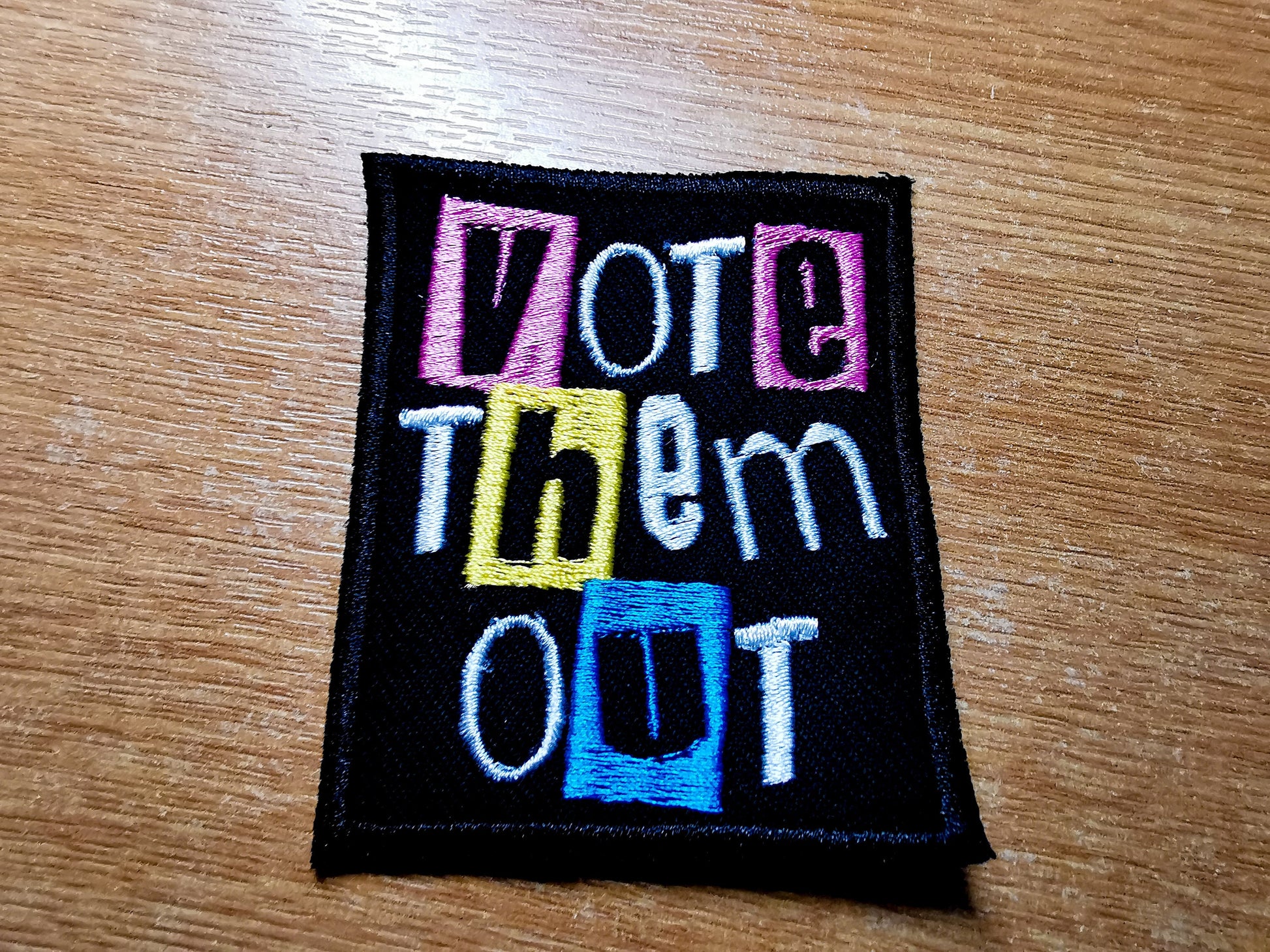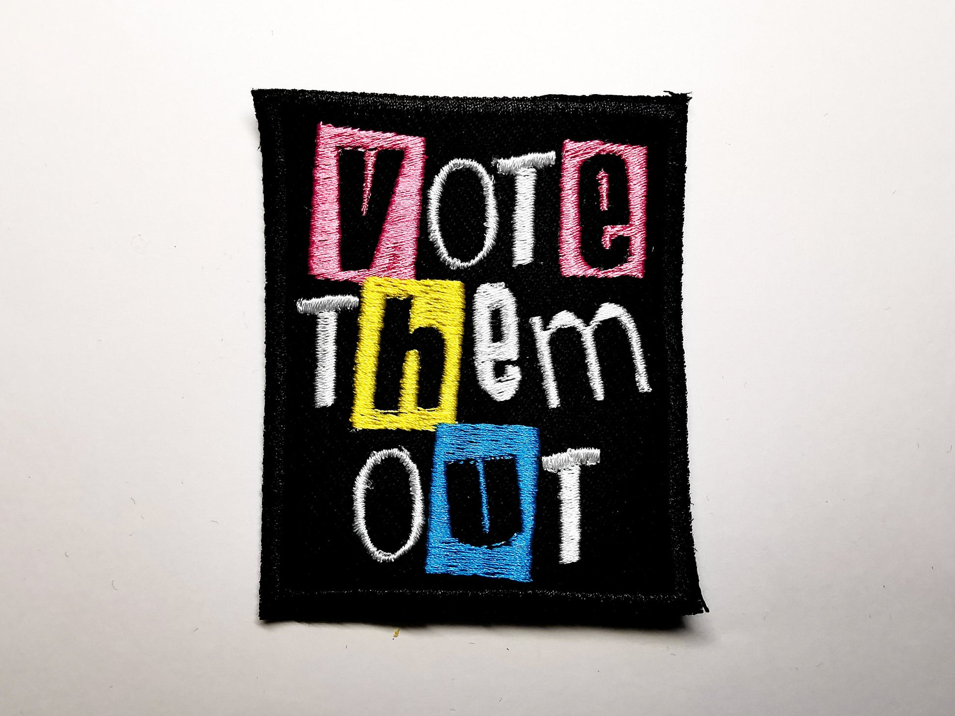 Vote Them Out Punk Embroidered Iron On Patch Politics Pastel Styled - Pink / Yellow / Aqua